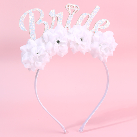 CN mahkota berkilau wanita, aksesori ikat kepala pernikahan gaya pengantin bunga putih