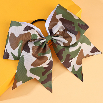 7 inci Camo cheerleader cetak Logo pabrik kamuflase bersorak busur dengan pita elastis